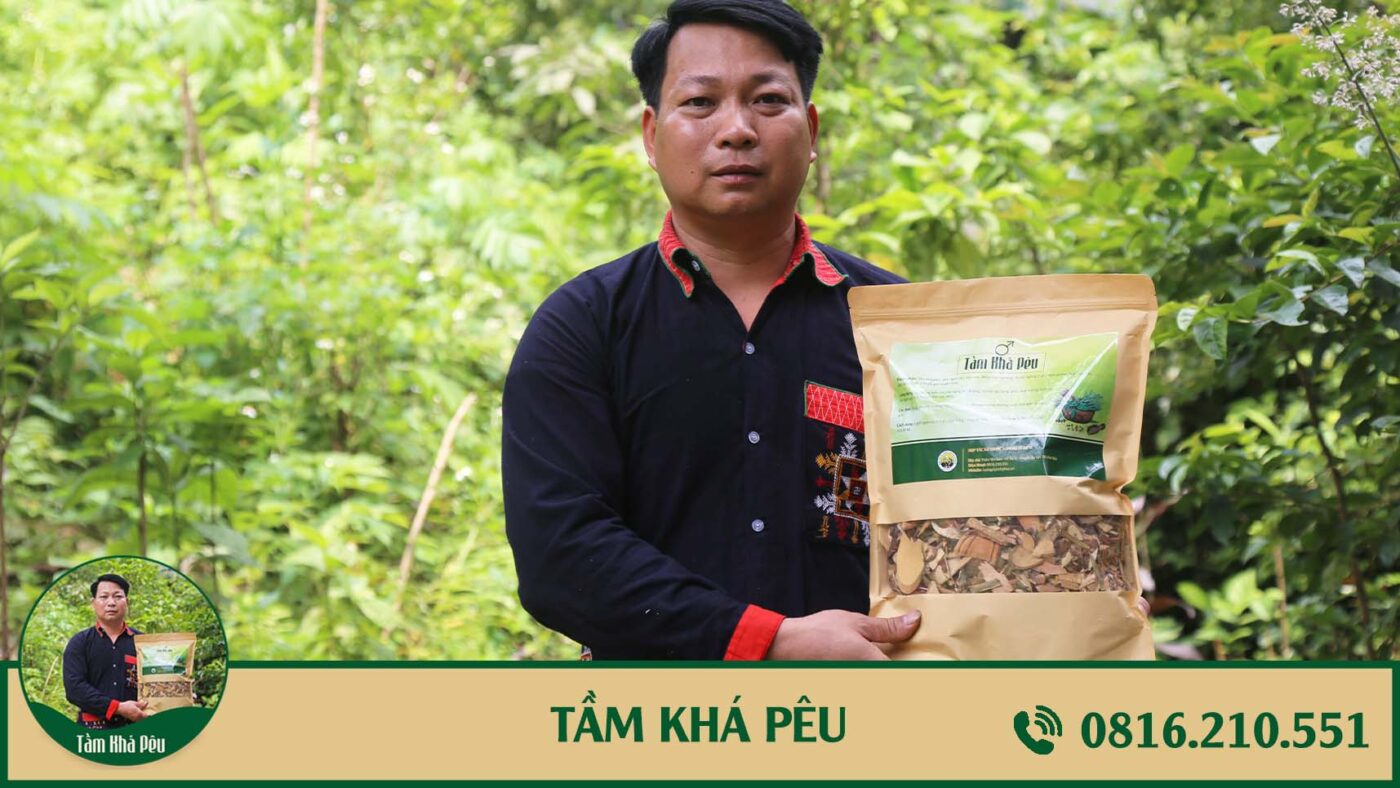 Một gói Tầm Khá Pêu được phối chế sẵn từ hơn 10 loại thảo dược quý như tằm khá pêu, nấm ngọc cẩu, sâm cau, dâm dương hoắc, ngọc cẩu, lộc giác giao, địa ủy, ngồng chan… Mỗi vị thuốc đều được chọn lọc và sơ chế kỹ lưỡng nhằm đảm bảo dược tính cao nhất khi ngâm.